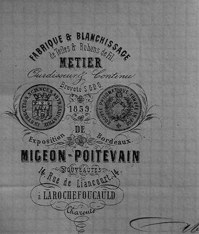 Marchand drapier, sa maison de commerce est l’ancêtre de la fabrique de toiles et rubans Migeon-Poitevin, rue de Liancourt, à La Rochefoucauld, récompensée en 1859 à l’exposition de Bordeaux.